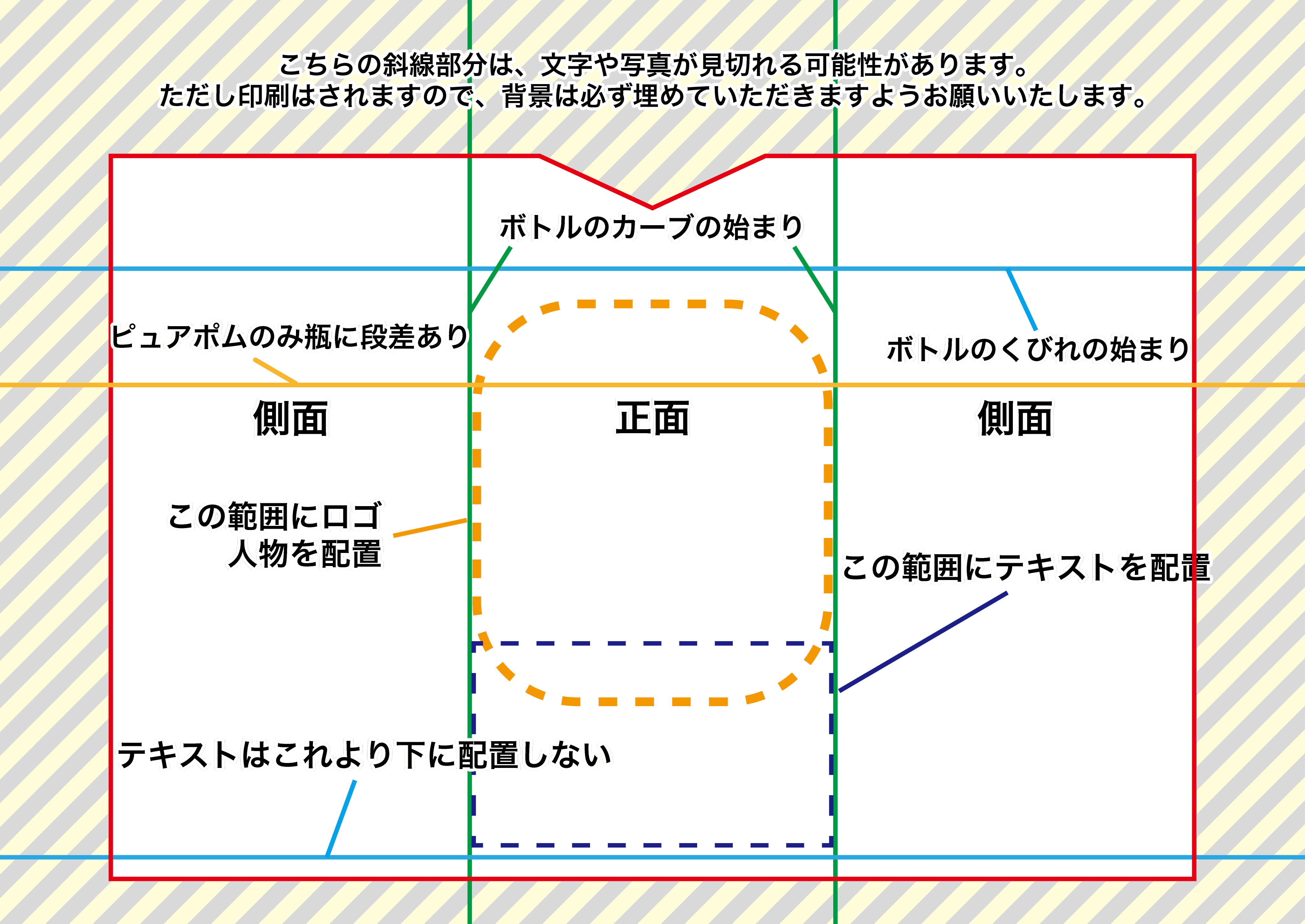 ガイドラインを当てはめて制作していただくとボトル完成後も綺麗にデザインが反映されます。